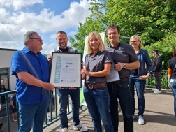 Zertifizierung der Grundschule in Hülsenbusch © Steffen Glaubitz. Auf dem Foto (v. li.): stlv. Schulleiter Viktor Wolf, Ariane Kautschke, Jens Eichner und Anne Walk